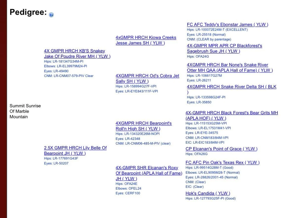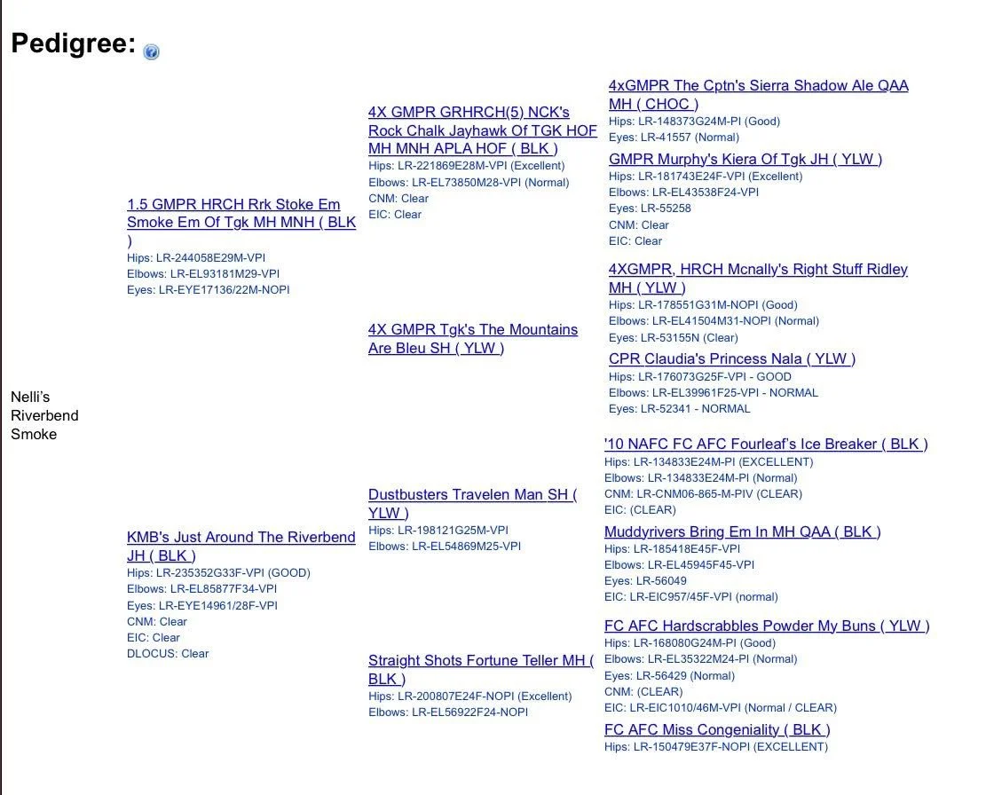 Every breeding dog in our program is health‑screened for hips, elbows, eyes, and relevant genetic markers through OFA and DNA testing. We carefully select sires and dams with proven working titles and clean pedigrees. This transparency minimizes genetic risk and increases the odds of producing hardworking, long‑lived companions